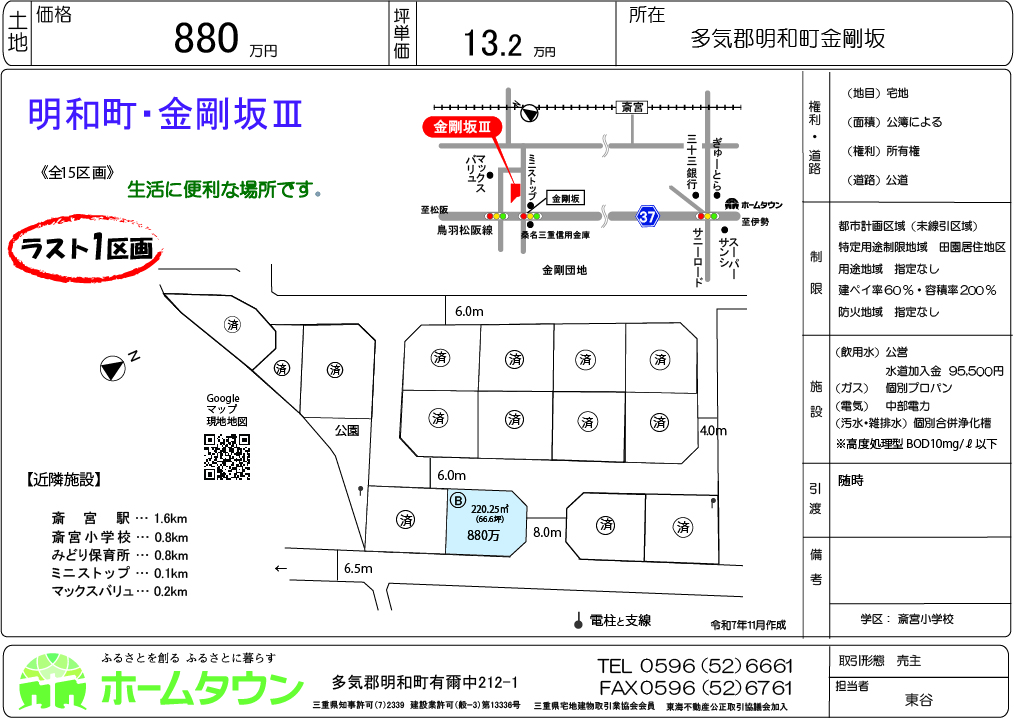 金剛坂に新規分譲地15区画完成。買い物や病院も近く生活に便利な場所です。