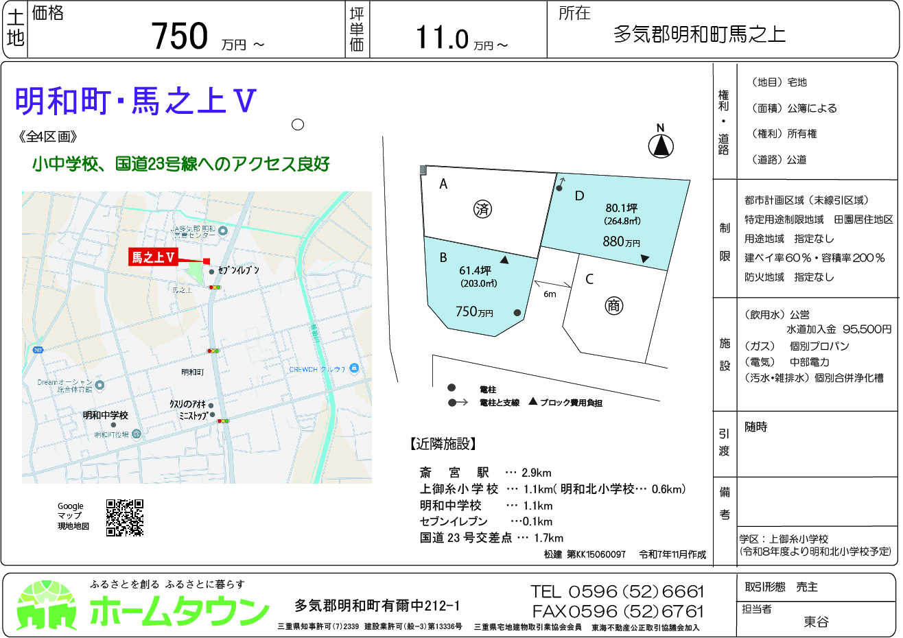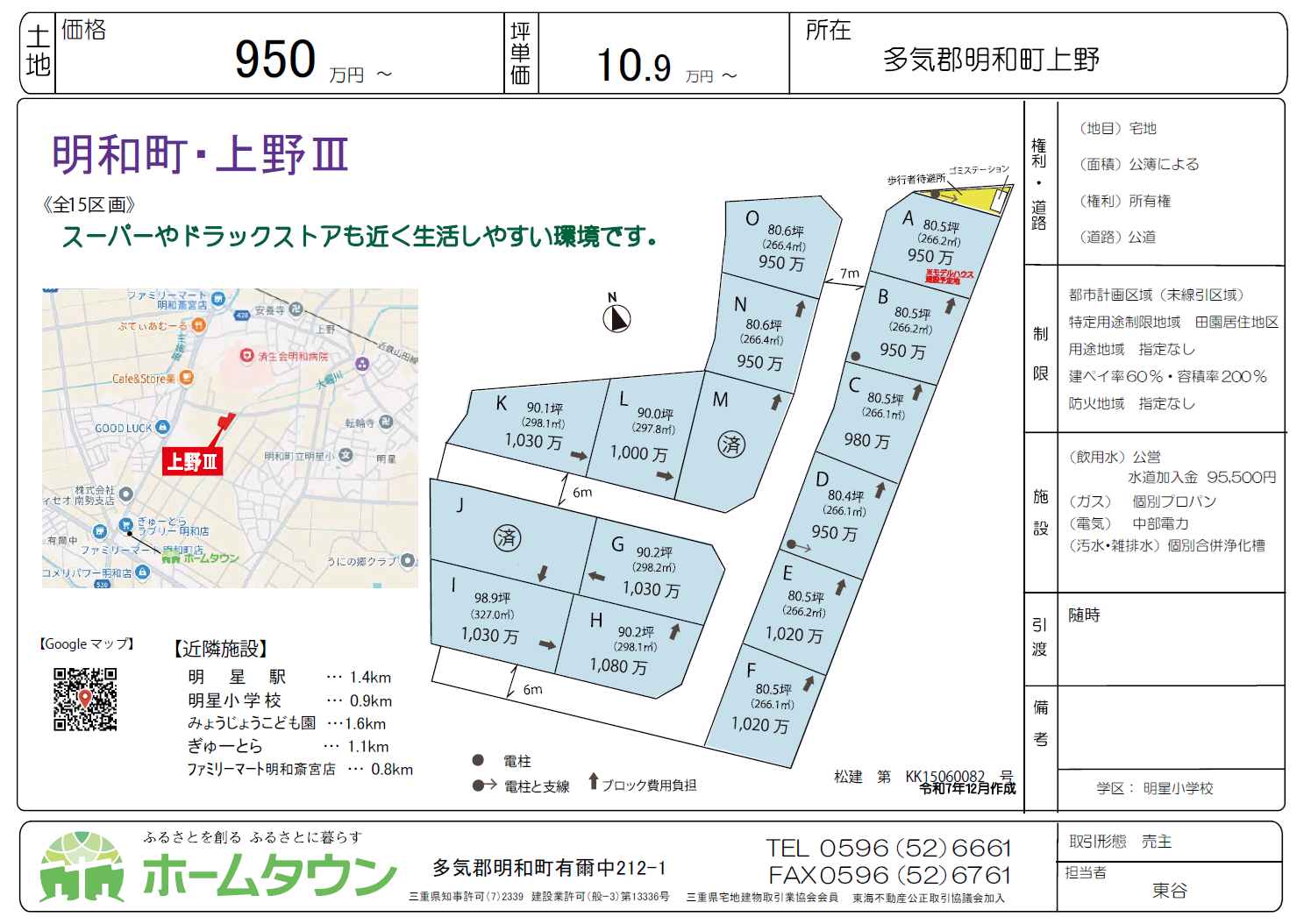 土地明和町・有爾中(仲介)値下げしました【2025年5月】コンビニやスーパーが近く、買い物に便利な場所です。