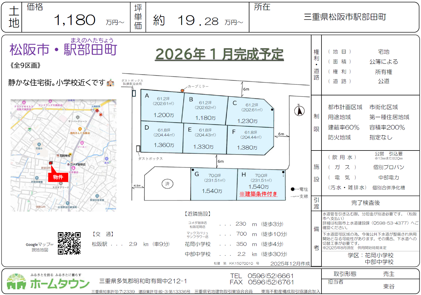 土地松阪・駅部田町(売主)予約販売受付中!2026年1月完成予定人気エリア!小学校近くです